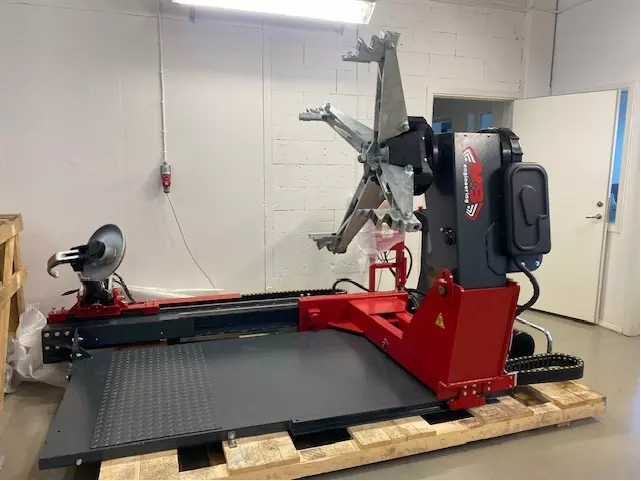 Monteringsmaskin från Italienska M&B Engineering. Samma maskin som ovan fast med en tallrik som klarar upp till 27 tum. Denna tallriksmodell är fyrkantig med rundade hörn, vilket underlättar demonteringen av den andra (nedre delen) av däcket. Två hastigheter (7-14 rpm) är standard, men kan fås med en steglös motor om 0-16 rpm. Maskinen på bilden är extrautrustad tecnolight och helperarm. Samtliga maskiner i 720-serien går att komplettera med stor hjälparm (Tecnohelp) Liten hjälparm (Technolight), Helper group, samt hjullyft. Diverse plastdetaljer för klor och monteringshuvud för att skydda ömtåliga fälgar, samt klor till MC- och skottkärror finns också i tillbehörslistan.
